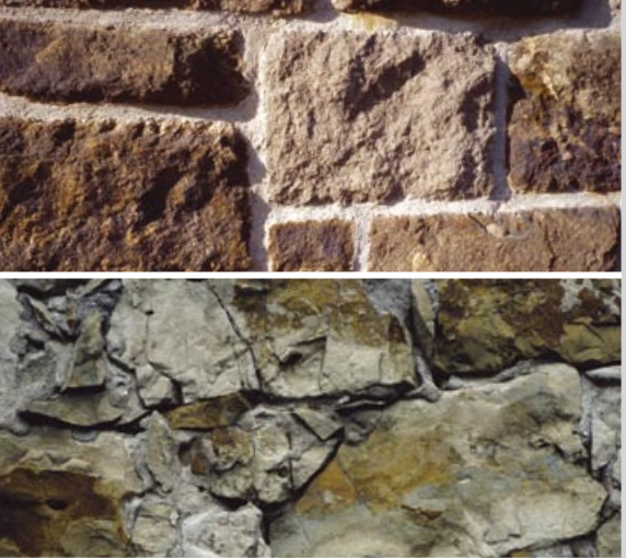 U góry: właściwe spoiwo do umocnienia zabytkowego muru. U dołu: mur zniszczony przez użycie cementowych zapraw. Źródło: zkw-otterbein.de