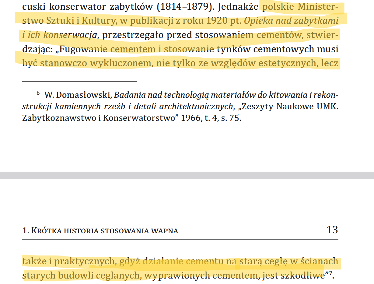 Źródło; Wapno dyspergowane: spoiwo zapraw i farb, Wiesław Domasłowski, Wydawnictwo Naukowe,Toruń, 2014